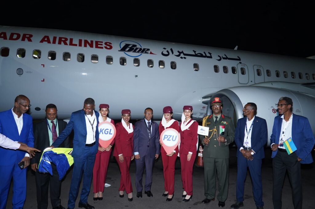 في امسية تاريخية بكيغالي الموافق الاربعاء التاسع من يوليو 2025، ارتفعت هتافات الابتهاج في مطار كيغالي الدولي بينما كانت طائرة بدر التي تحمل العلم السوداني البوينج 800- 737 بقيادة الكابتن هشام عثمان وفريق مميز من الضيافة الجوية علي راسه مدير الضيافة الصادق نقد الله ،لامست الطائرة المدرج لتدشن بذلك أول رحلة جوية مباشرة تربط السودان برواندا. ووراء هذا الإنجاز التاريخي يقف سفر دبلوماسي دؤوب بقيادة سفير السودان في رواندا الاستاذ خالد موسي ، الذي حوّل حلم الربط الجوي إلى واقع ملموس، في خطوة تفتح آفاقاً جديدة للتكامل الاقتصادي والاجتماعي بين البلدين ، وقد تحدث السيد السفيربقلب مفتوح عن تتويج هذا الحدث قائلا : انه يوم مميز في تاريخ العلاقات بين البلدين السودان ورواندا ،حيث شهد تدشين خط الطيران بين البلدين ووصول اول رحلة بين العاصمة الادارية الحالية للسودان بورتسودان وعاصمة رواندا كيغالي ، التي تمثل شرق افريقيا ، ووصول الرحلة الاولي علامة تاريخية فارقة في تغطية العلاقة الثنائية بين البلدين ، وتدفع بربط الميزان التجاري وخدمة الجالية ونقل البضائع ، واهم مافي ذلك ماتشهده علاقات البلدين من تقدم ملحوظ ، وسيعزز خط النقل الجوي الاستفادة من تجربة رواندا في السلام خاصة في ظل تشابه ظروف البلدين ، حيث يشهد السودان الان عدوان اقليمي من قبل مليشيا الدعم السريع وداعميها ، وسيعزز الخط الجوي نقل البعثات السودانية المختلفة للاستفادة من تجربة رواندا في العدالة الاجتماعية ، والنمؤ والتطور الذي تشهده رواندا ، كما ان الخط الجوي سيعمل علي خدمة اعضاء الجالية البالغ عددهم فوق ال خمسة الاف من مهنيين وطلاب ،فضلا عن وجود جامعة سودانية بخبرات وكفاءات موجودة برواندا .